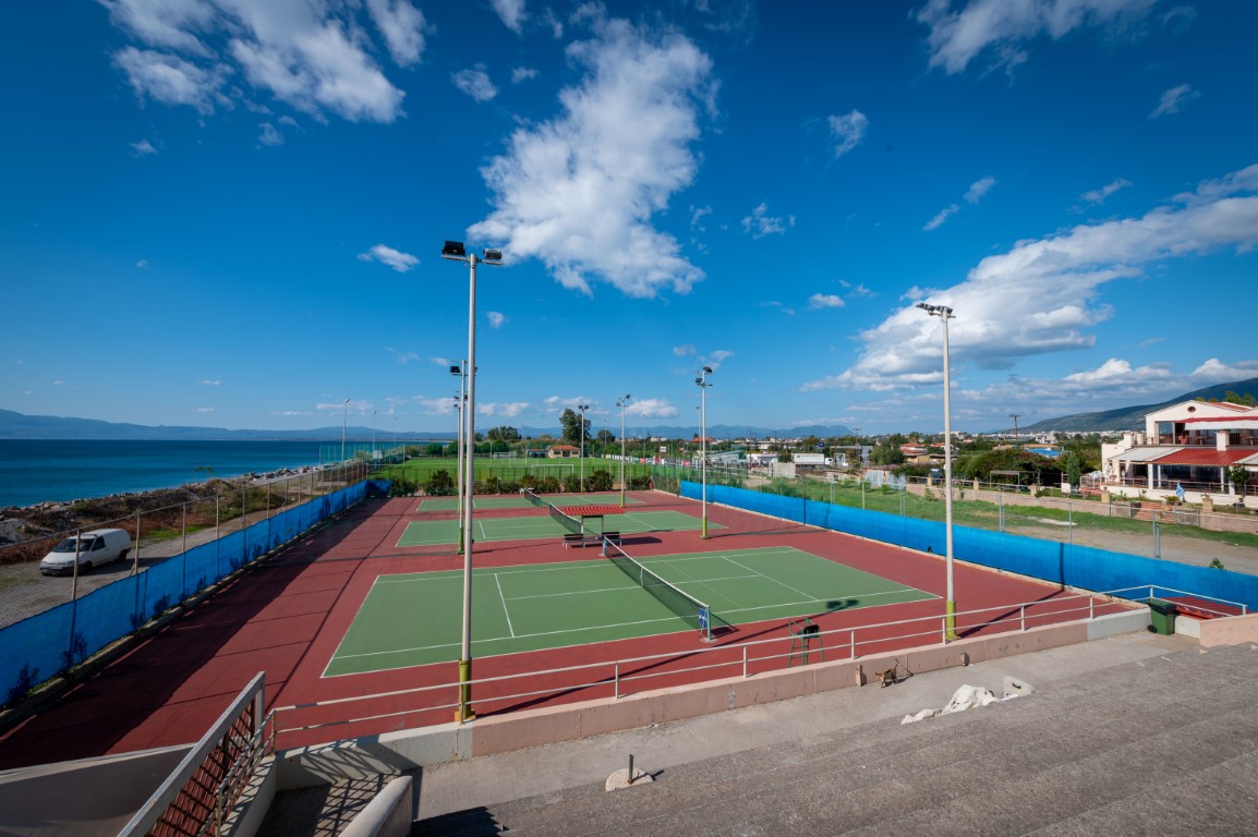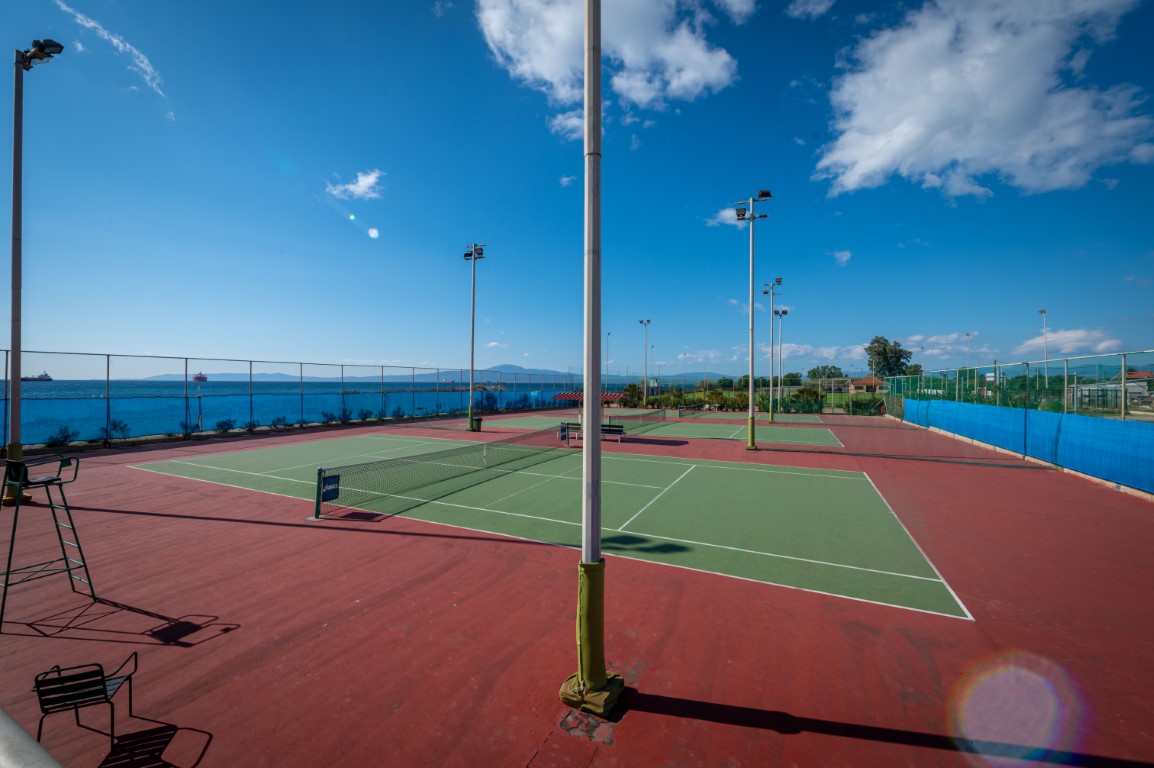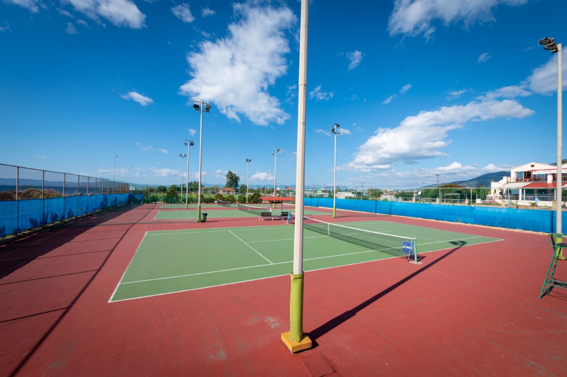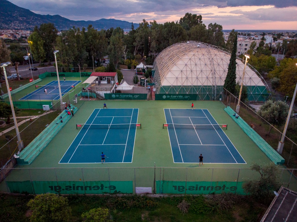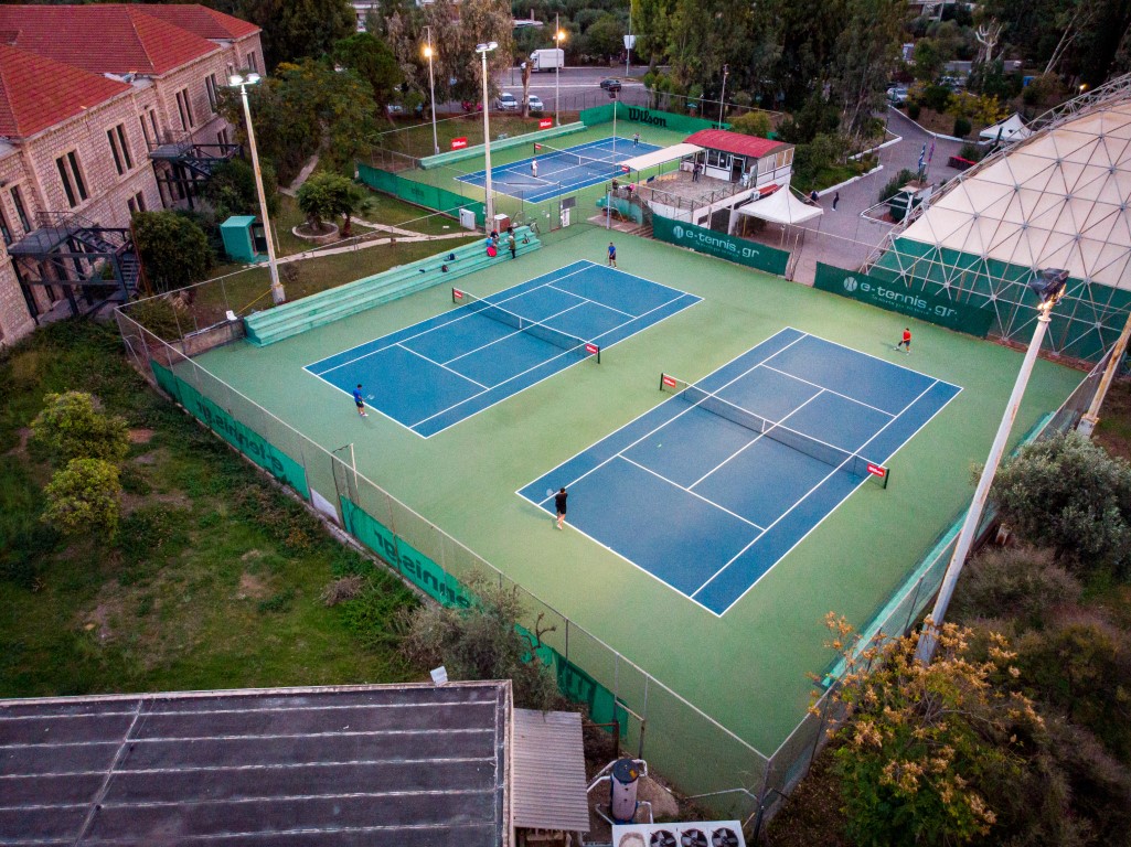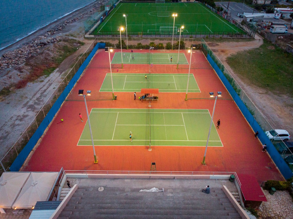 Τρία γήπεδα με σύστημα ελαστικού τάπητα SUPERSOFT του Ιταλικού οίκου CASALI σε τέσσερις διαδοχικές στρώσεις, ITF classified με προβολείς LED ασύμμετρης δέσμης Class II (300lux).
