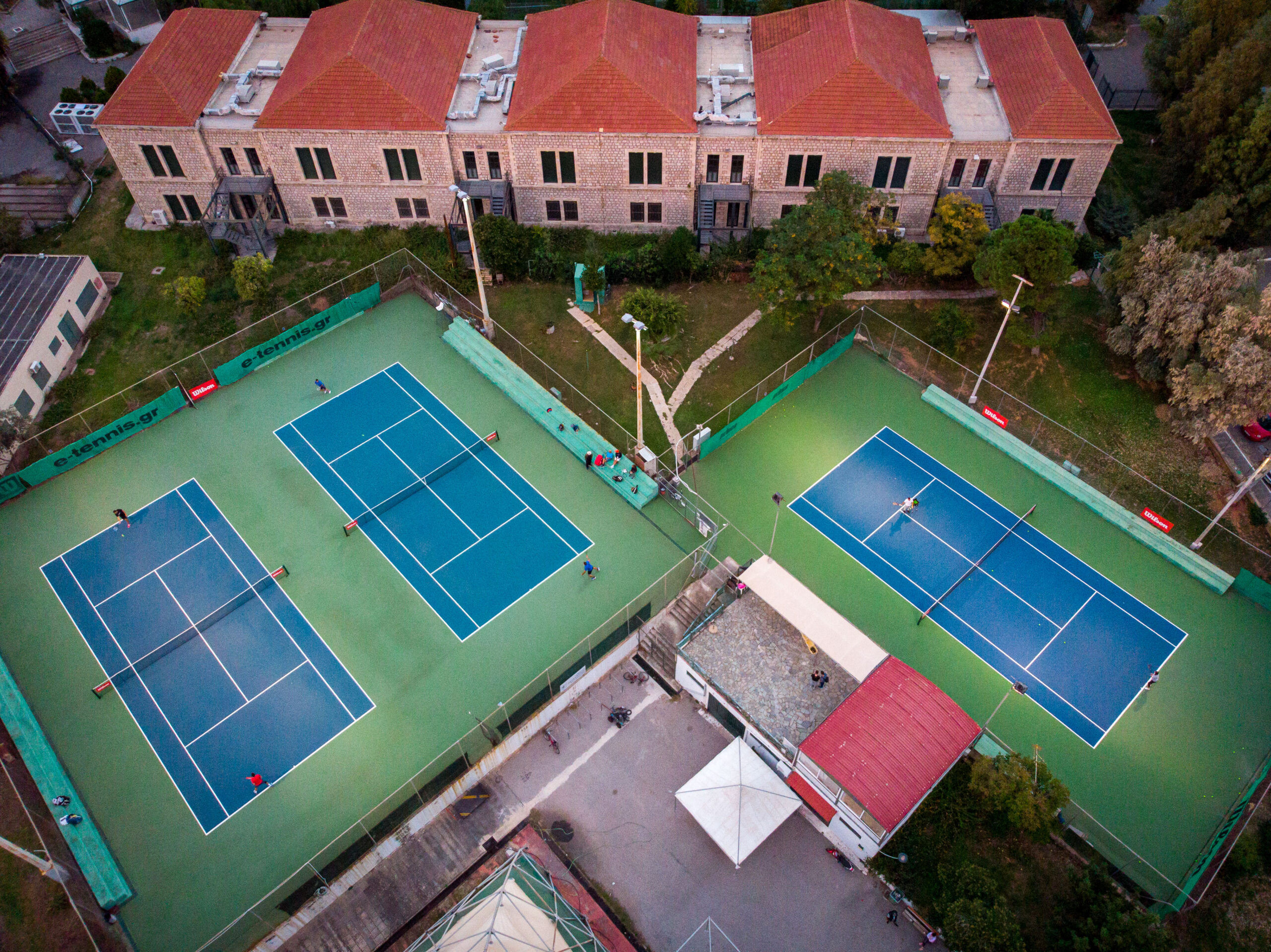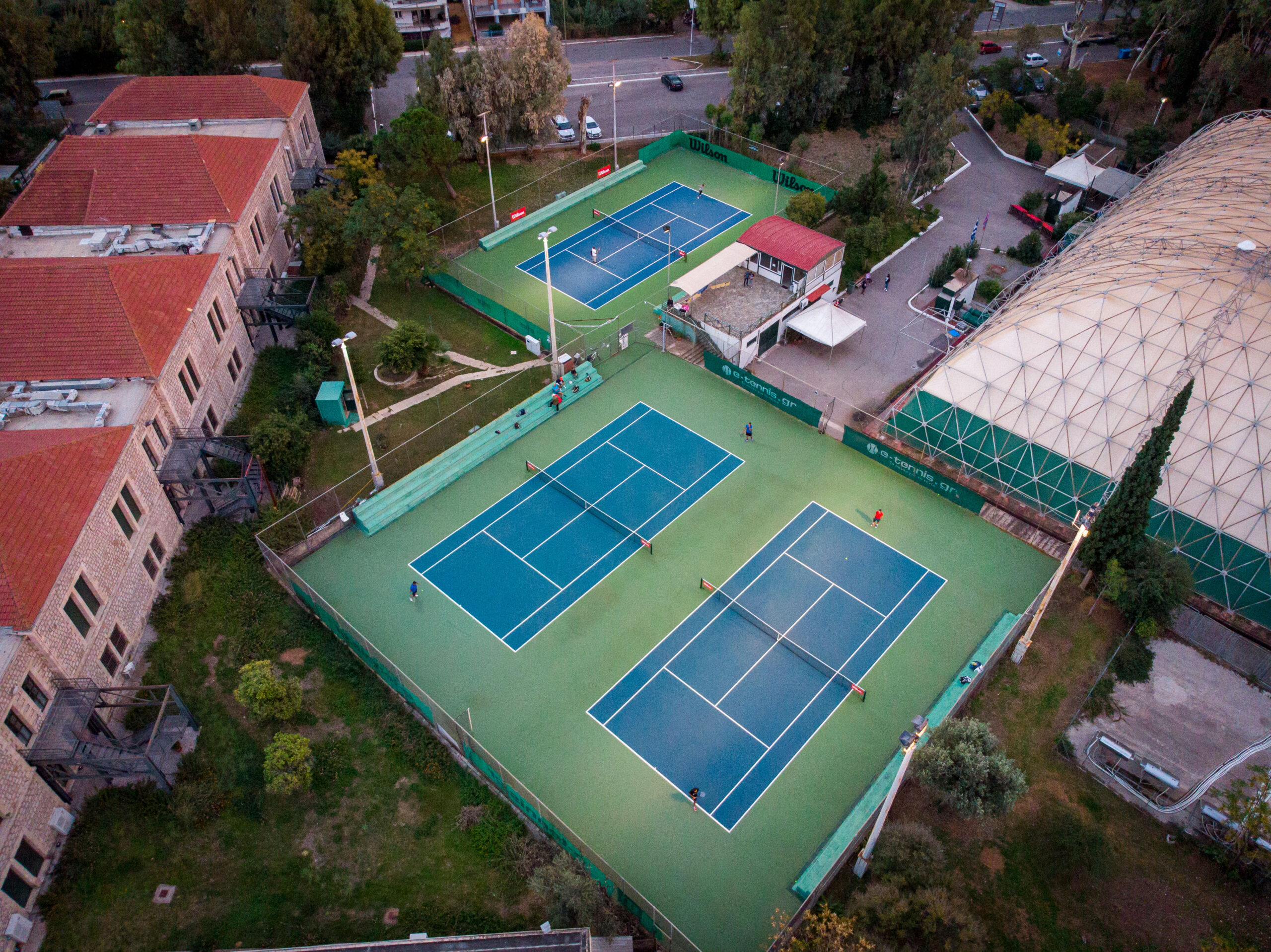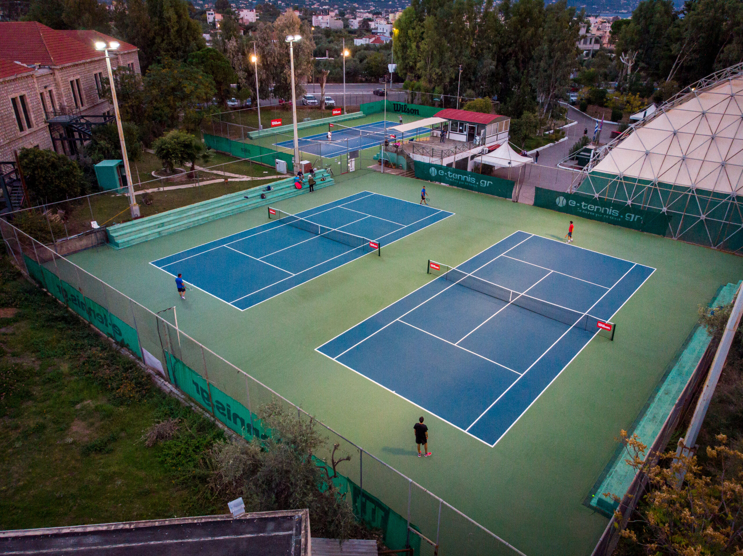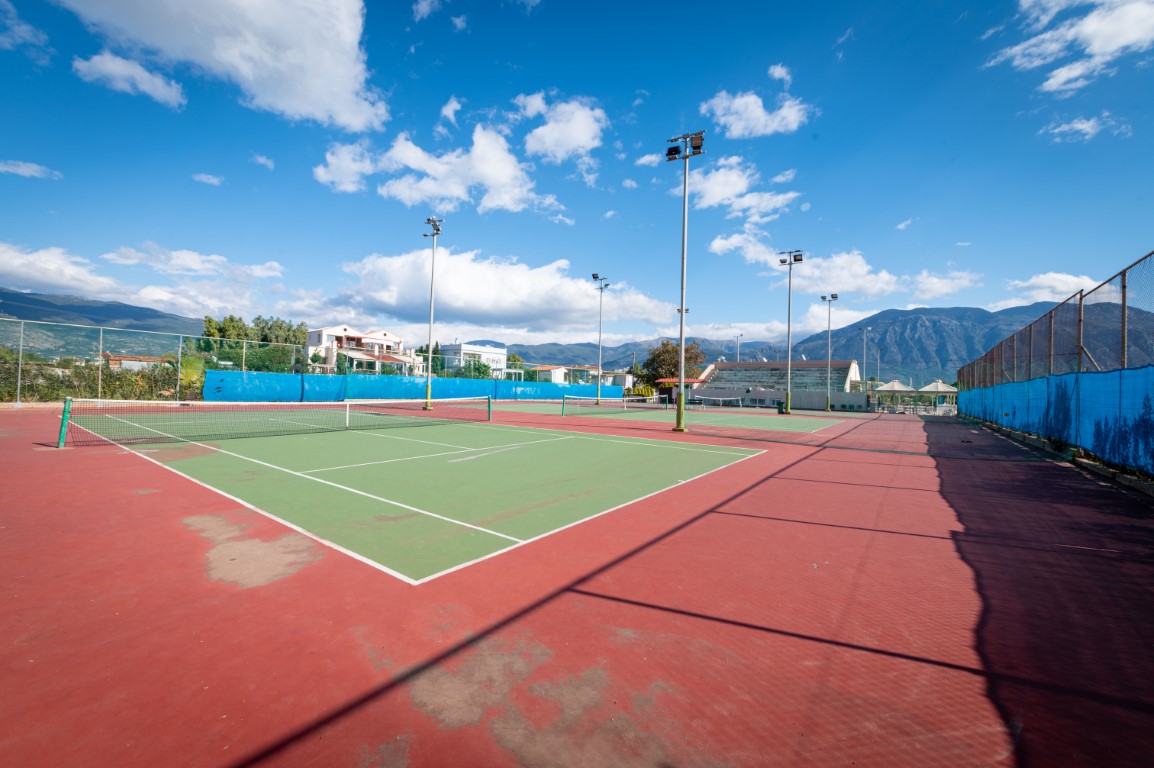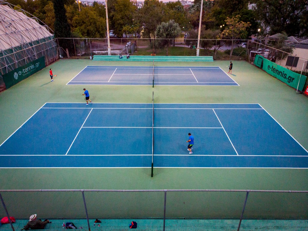 Τρία γήπεδα με σύστημα ελαστικού τάπητα SUPERSOFT του Ιταλικού οίκου CASALI σε τέσσερις διαδοχικές στρώσεις, ITF classified με προβολείς LED ασύμμετρης δέσμης Class II (300lux).