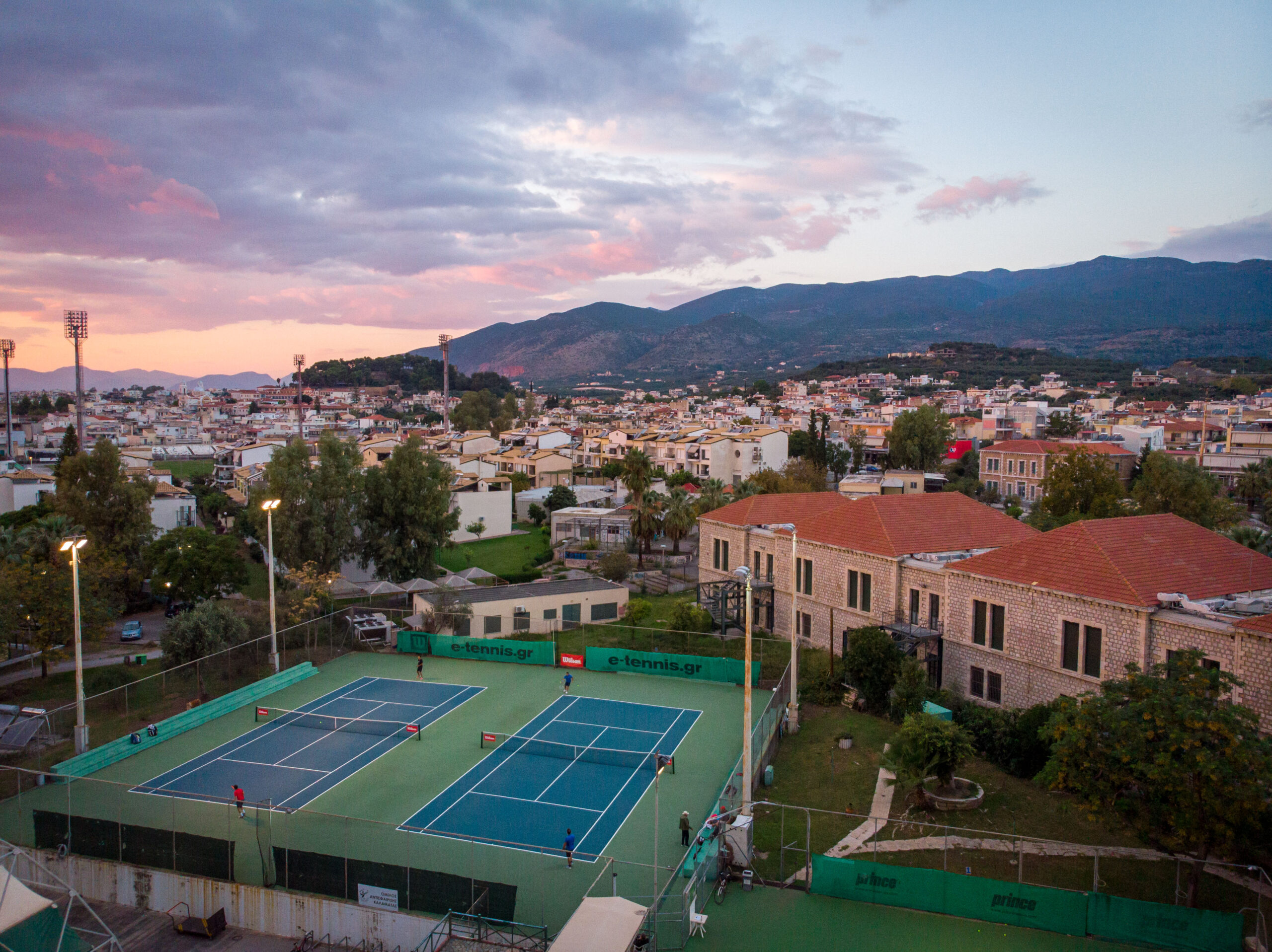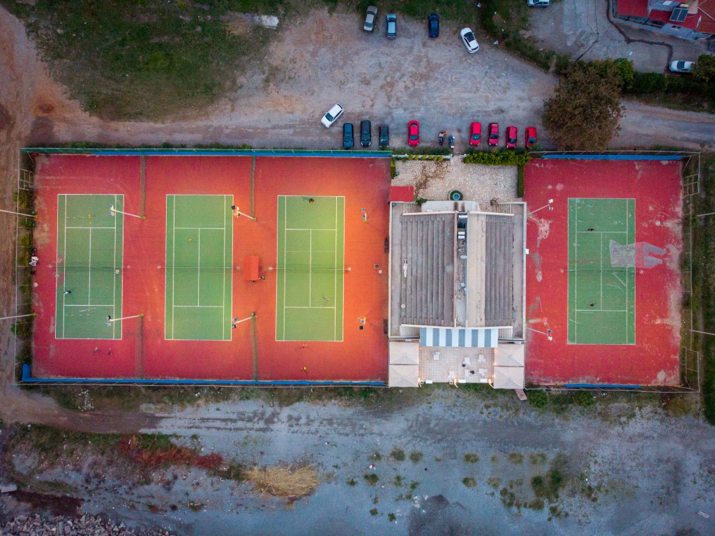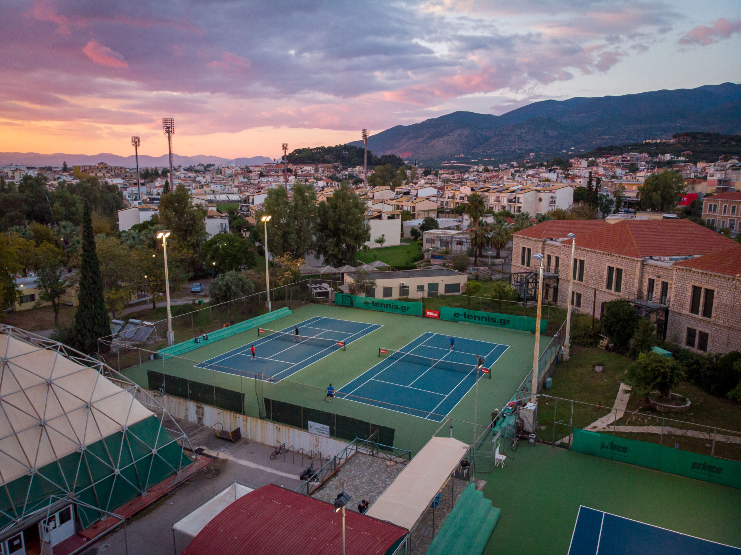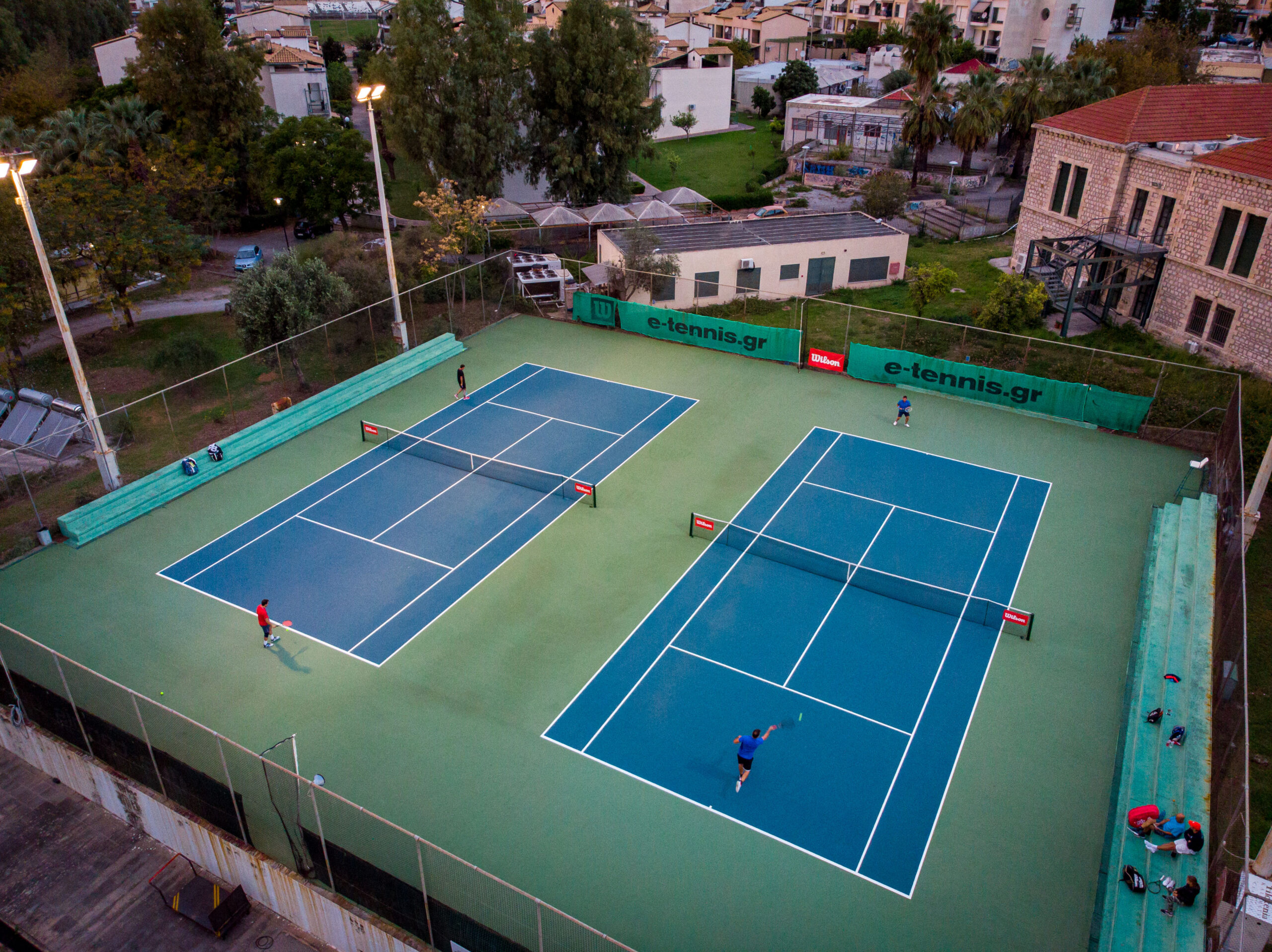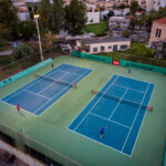 Τρία γήπεδα με σύστημα ελαστικού τάπητα SUPERSOFT του Ιταλικού οίκου CASALI σε τέσσερις διαδοχικές στρώσεις, ITF classified με προβολείς LED ασύμμετρης δέσμης Class II (300lux).