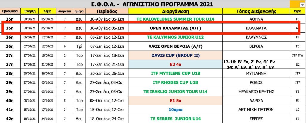 Με μεγάλη χαρά ανακοινώνουμε την διεξαγωγή του Πανελλαδικού Πρωταθλήματος Ανδρών, στις εγκαταστάσεις του Ομίλου Αντισφαίρισης Καλαμάτας, από τις 30 Αυγούστου 2021 έως τις 5 Σεπτεμβρίου 2021.