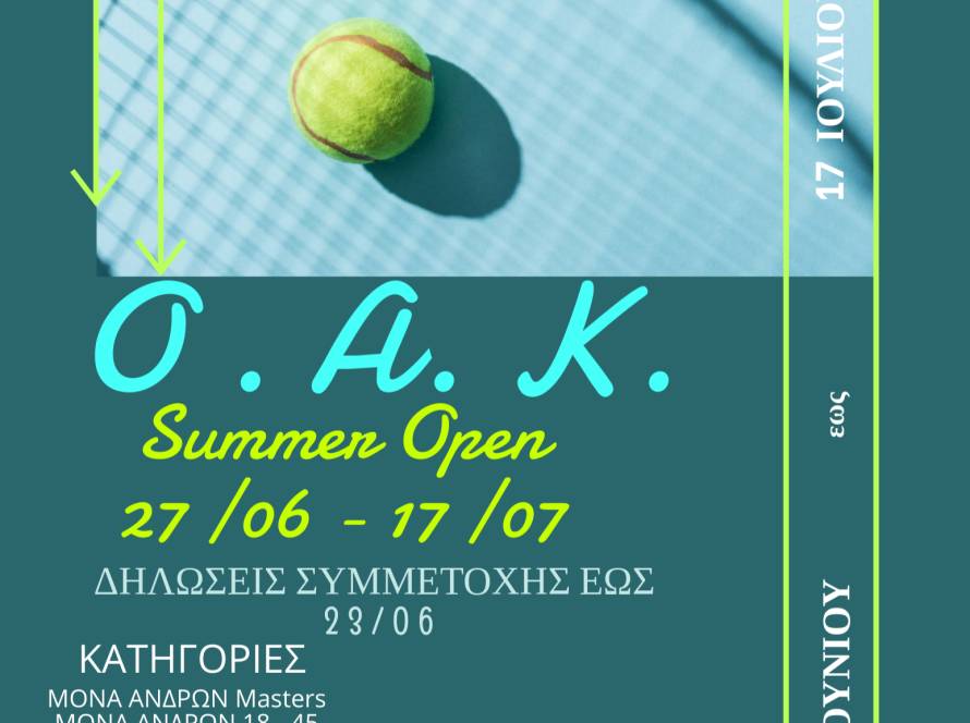 kalamatatennis, Ενημερώσεις, ΤΑ ΝΕΑ ΜΑΣ, Τουρνουά11 Ιουνίου 2022ΠΡΟΚΗΡΥΞΗ ΤΟΥΡΝΟΥΑ “Ο.Α.Κ. Summer Open” 27/6/2022-17/7/2022